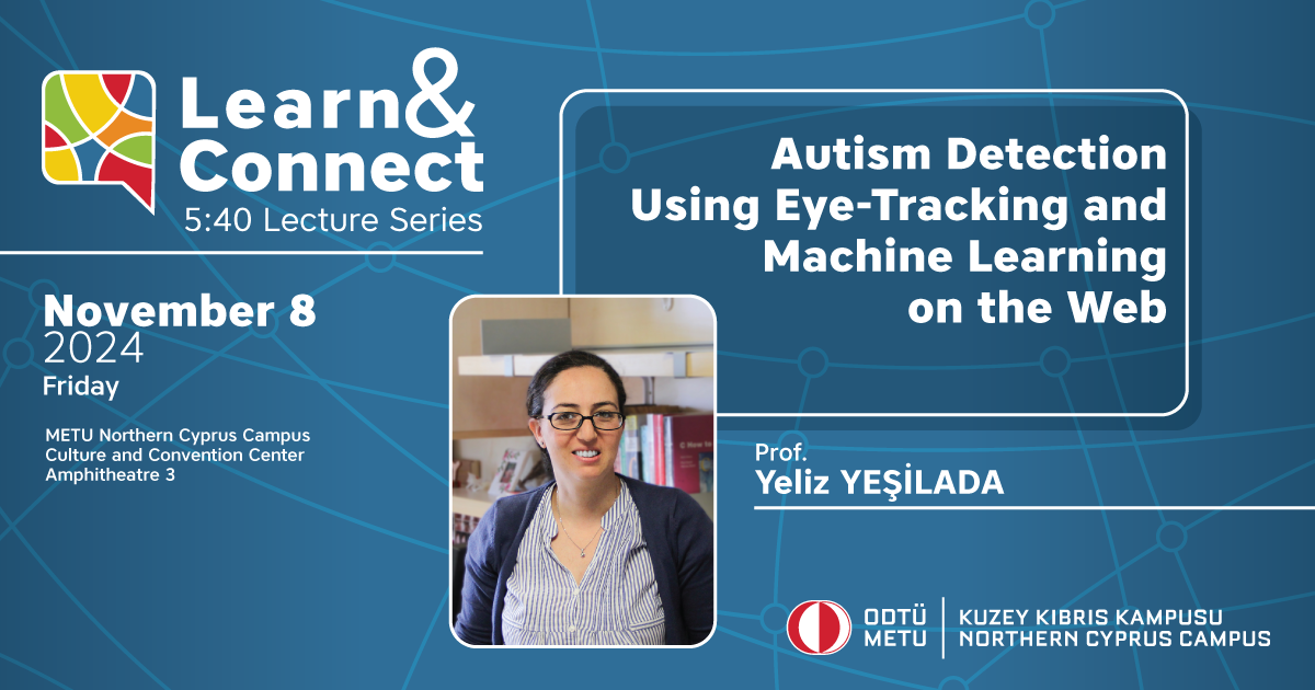 The first event of the series will feature a seminar by Prof. Dr. Yeliz Yeşilada titled “Autism Detection Using Eye-Tracking and Machine Learning”, in which she will talk about her work focusing on creating science-based web design guidelines for individuals with autism. Professor Yeşilada conducts research in the fields of human-computer interaction and artificial intelligence applications.