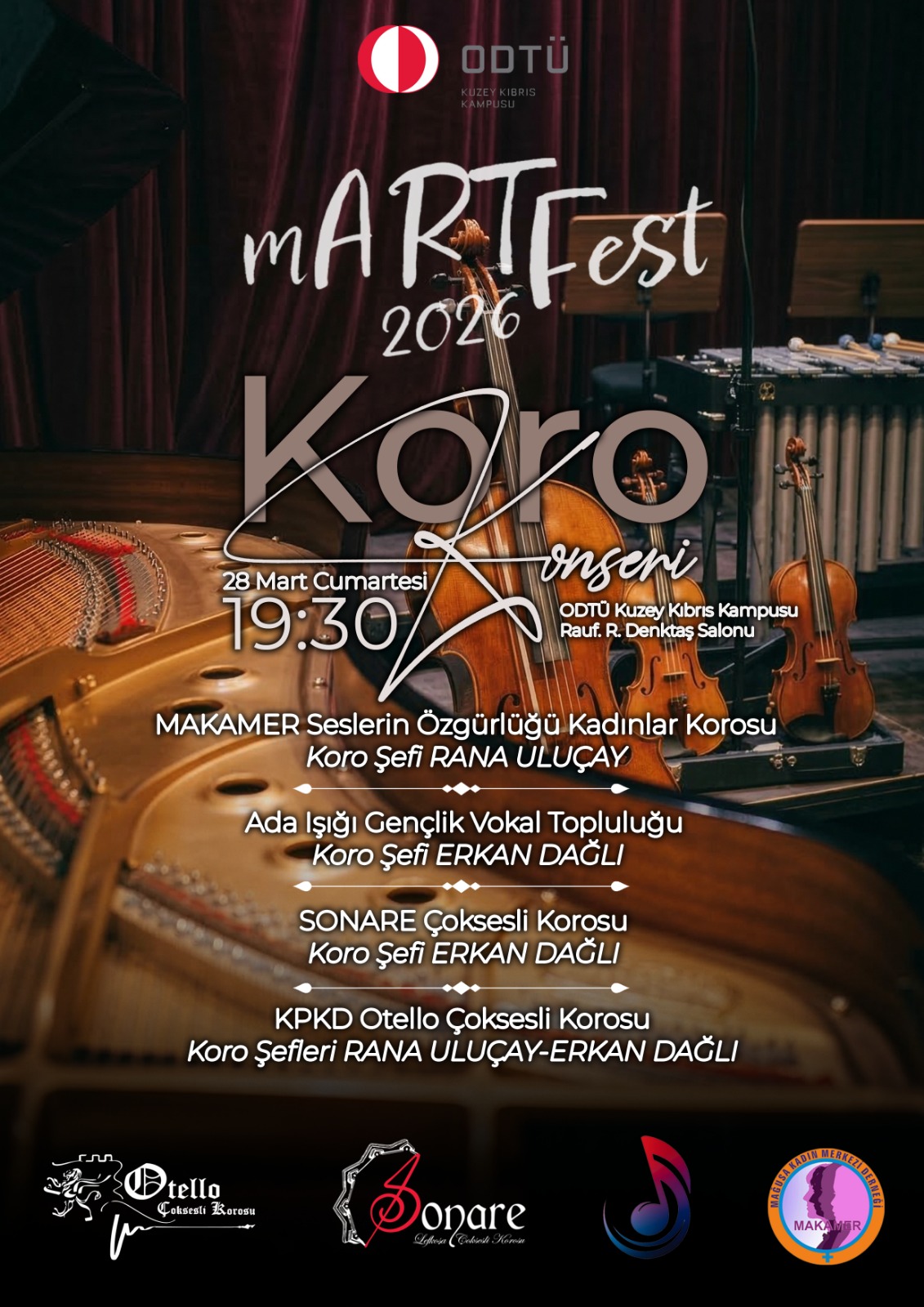 mARTfest Kültür ve Sanat Festivali kapsamında, Çoksesli Koro Konseri, 28 Mart 2026 Cumartesi günü saat 19:30’da Kültür ve Kongre Merkezi Rauf Raif Denktaş Salonu’nda gerçekleştirilecektir.